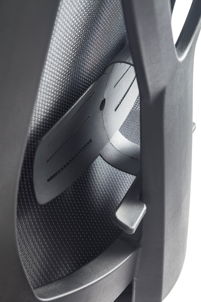 • Feststehende Rückenlehne mit atmungsaktivem, schwarzem Netzbezug