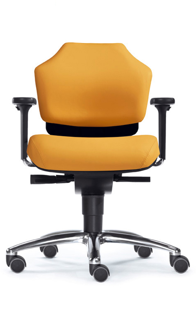 an universellen Arbeitsplätzen. Der Verlauf des Sitzes ist geradlinig bei mittelfester Polsterung.